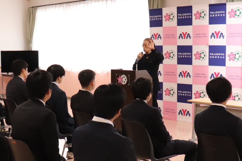 花田校長先生より、「皆さんはこれからの人生、自分で生きていかなくてはなりません。自分が何を持っていて、何が出来る人間なのかを考えながら、社会に貢献できる人間になってほしいと思います。二級自動車整備士資格取得を目標に、自分の持っているものを磨き、残りの三か月を大切に過ごして下さい。」とお話されました。