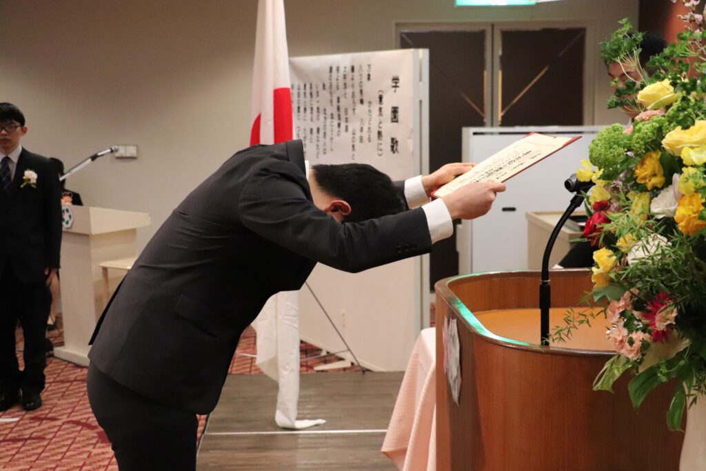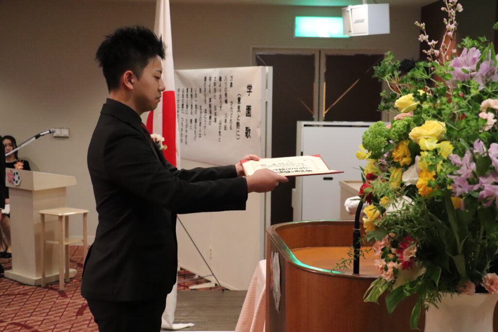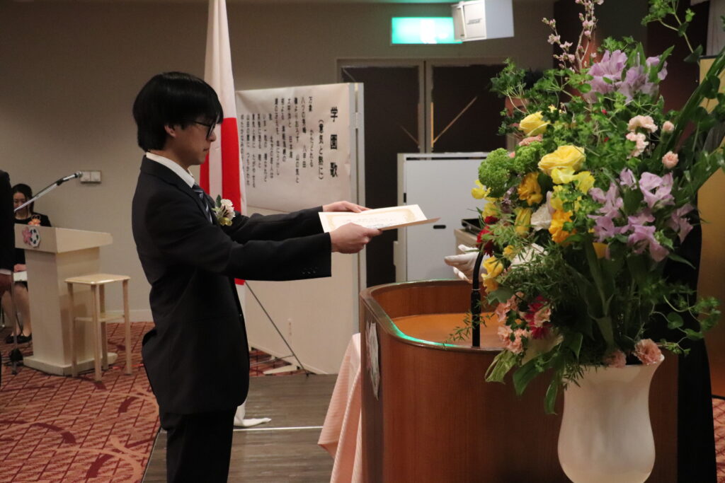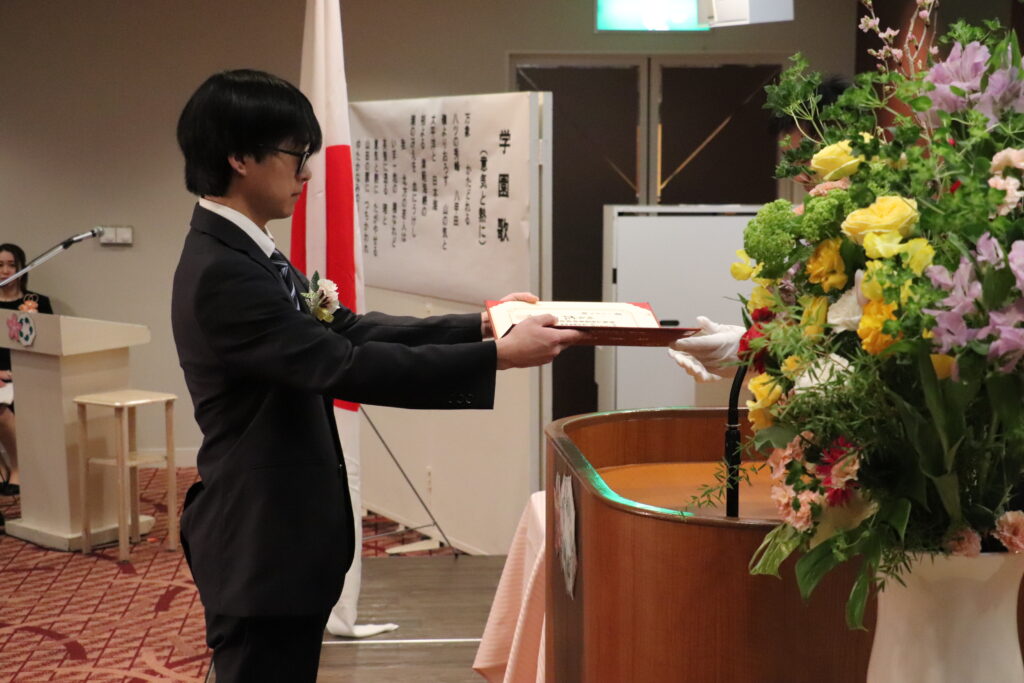 【記念品贈呈】卒業生代表:原子 翔之介さん